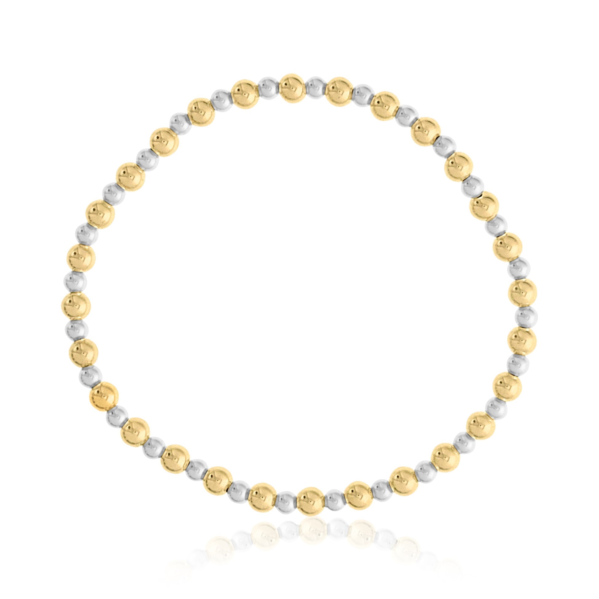 This bracelet pairs polished 4mm gold filled beads with delicate 3mm sterling silver beads in an elegant alternating pattern. The stretch fit ensures comfortable wear while offering a subtle interplay of warm and cool tones.