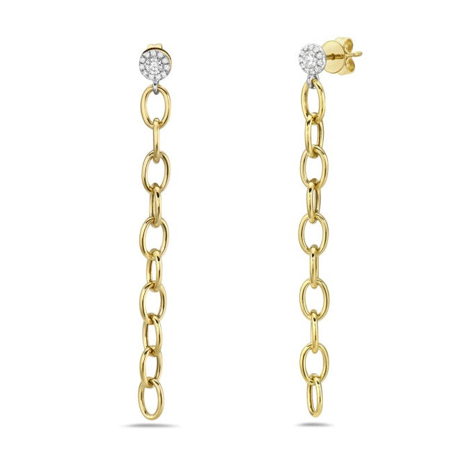 The Bassali 14K Yellow Gold Chain Earrings are a refined choice for any occasion. Featuring a delicate chain design accented with diamonds, these earrings effortlessly convert from a chain to a hoop, offering versatile style options. Crafted in 14K yellow gold, they combine lasting quality with distinctive fashion appeal.