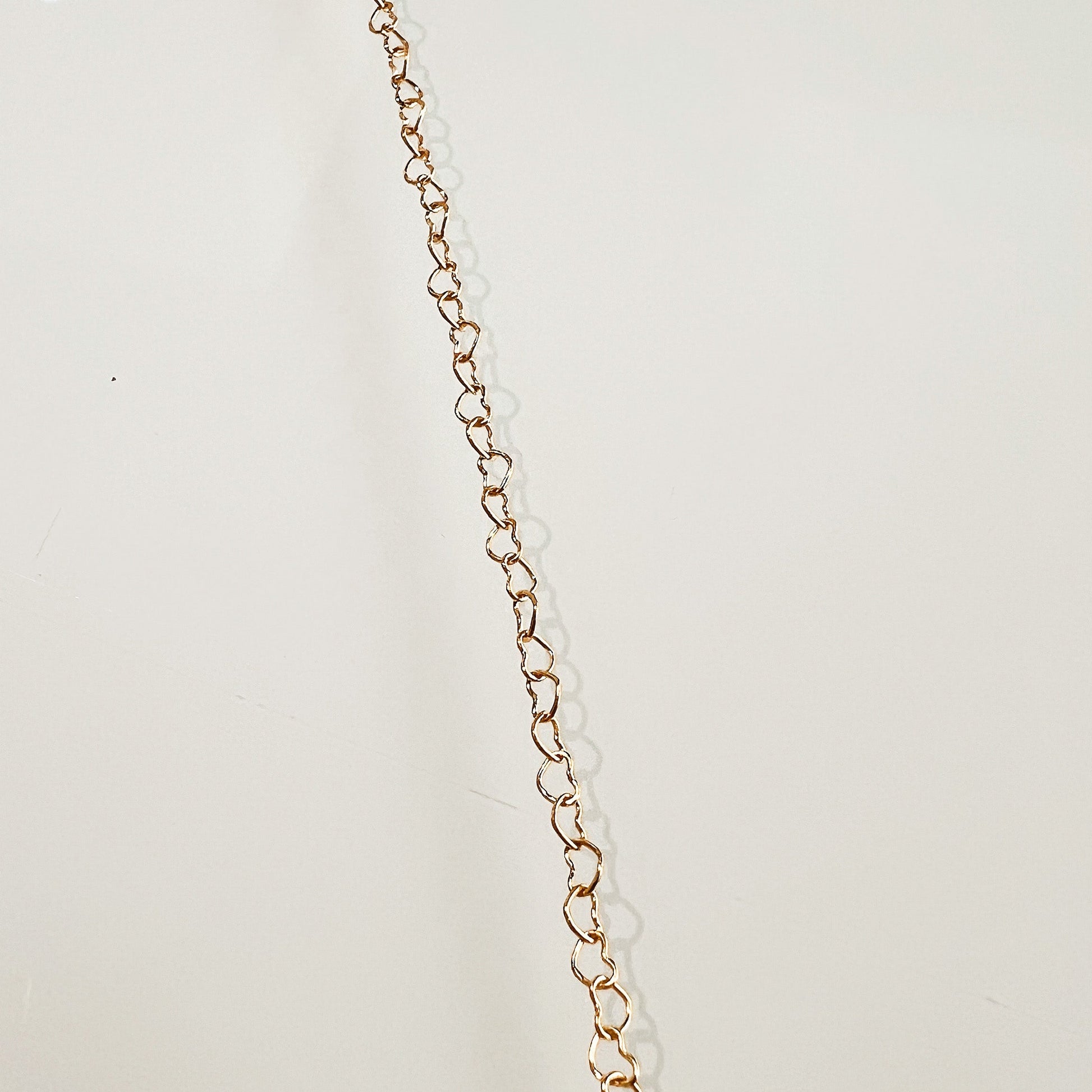 The 14k Yellow Gold Heart Chain features small, interlinked heart shapes that create a soft, romantic pattern. Elegant and understated, it sits gracefully on the skin for a subtle yet meaningful everyday look.
