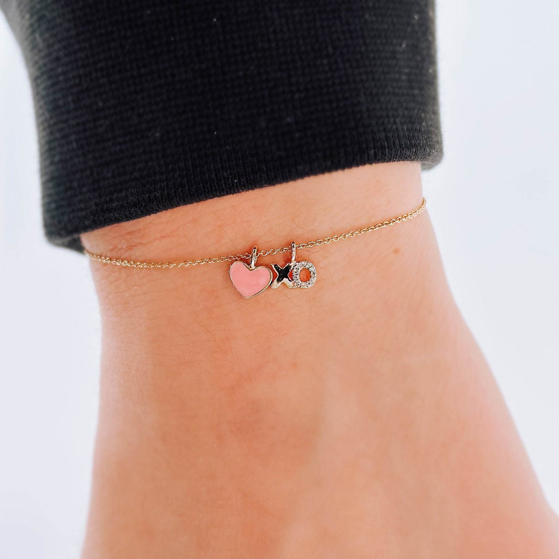 FUSE by Roset - 10K Gold Necklace Charm Pink Heart Charm "XO, ROSET"