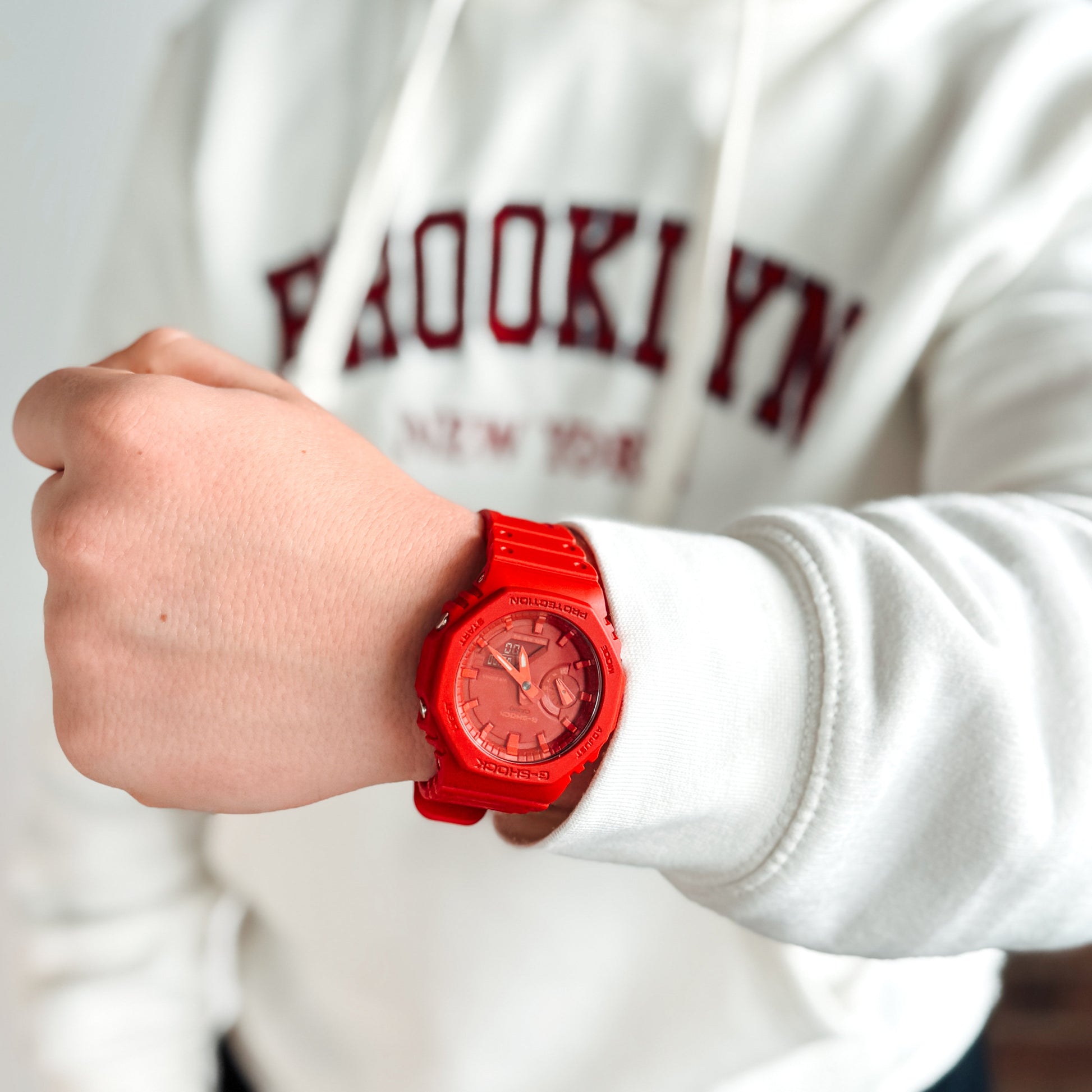 With its vibrant tone and slim profile, the G-SHOCK GA2100-4A delivers strength in simplicity. Designed around the iconic octagonal bezel of the original DW-5000C, this model blends analog-digital functionality with a bold, monochromatic red finish. Its minimalist aesthetic is supported by a lightweight, carbon-reinforced structure built to withstand the demands of everyday wear.