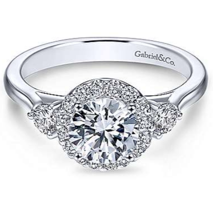 Gabriel "Noelle" Three Stone Halo Diamond Engagement Ring 7482W44