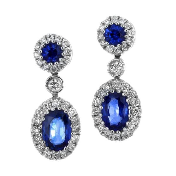 Crafted in exquisite 18K white gold, these beautiful earrings showcase carefully selected blue sapphires totaling 1.34 carats, accompanied by nearly half a carat of radiant diamonds (0.47 tcw). Designed with timeless grace, they are an excellent choice to enhance and cherish in your jewelry collection.