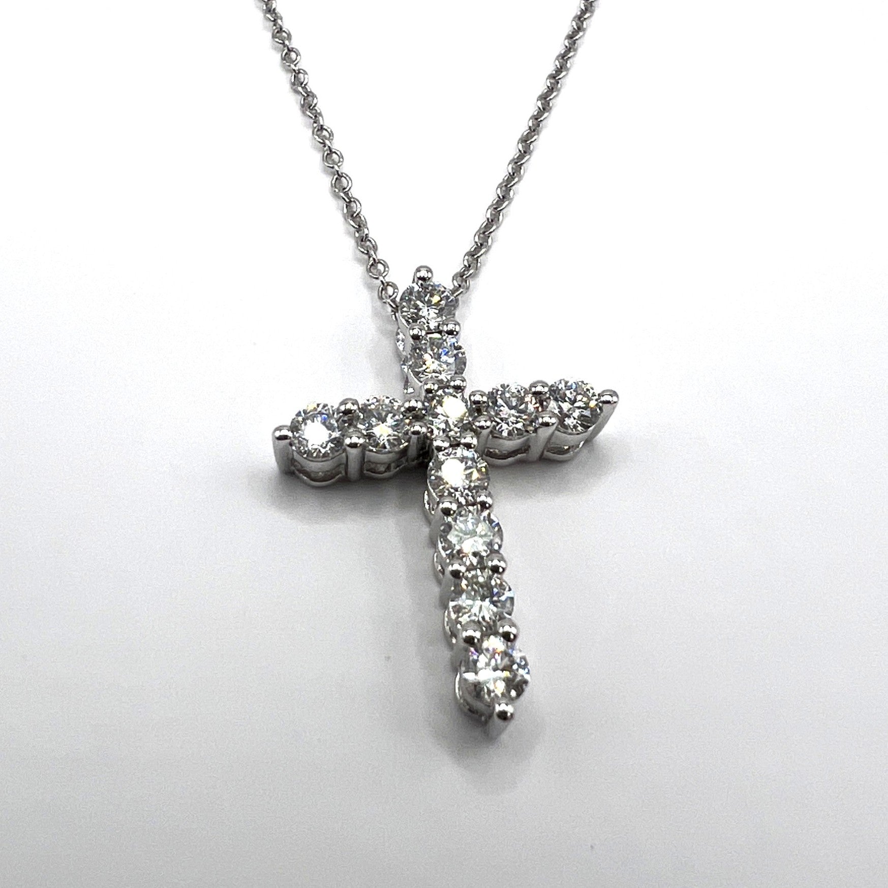 "Seren" Diamond Cross Necklace in 14K White Gold – 1.0 tcw Lab-Grown