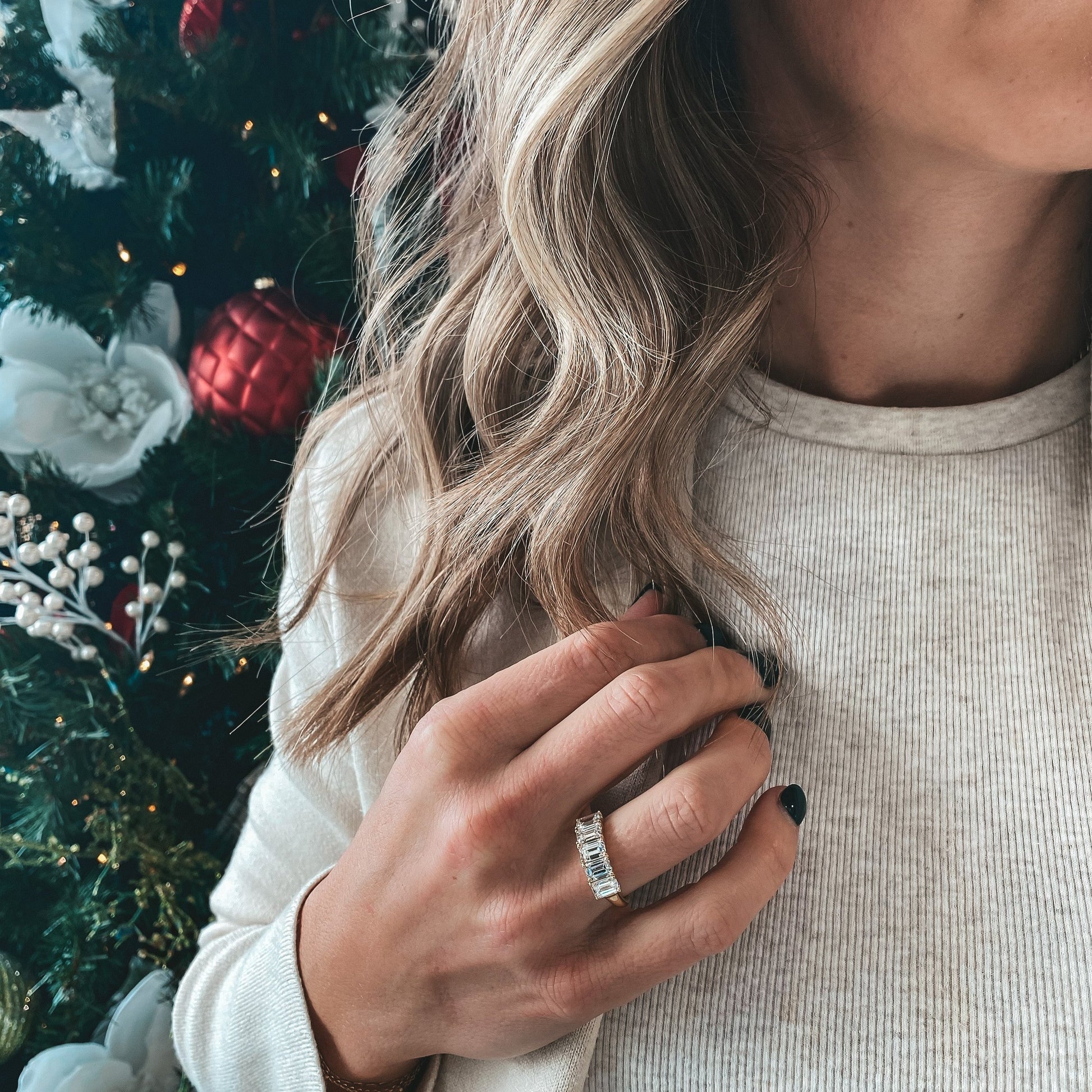 - Lab-grown emerald cut diamonds for crisp, clean brilliance