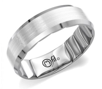 The MFit 14K White Gold band showcases a sandpaper center complemented by high polish bevels. With a slim 6mm width and 2mm thickness, it offers subtle sophistication for everyday wear.