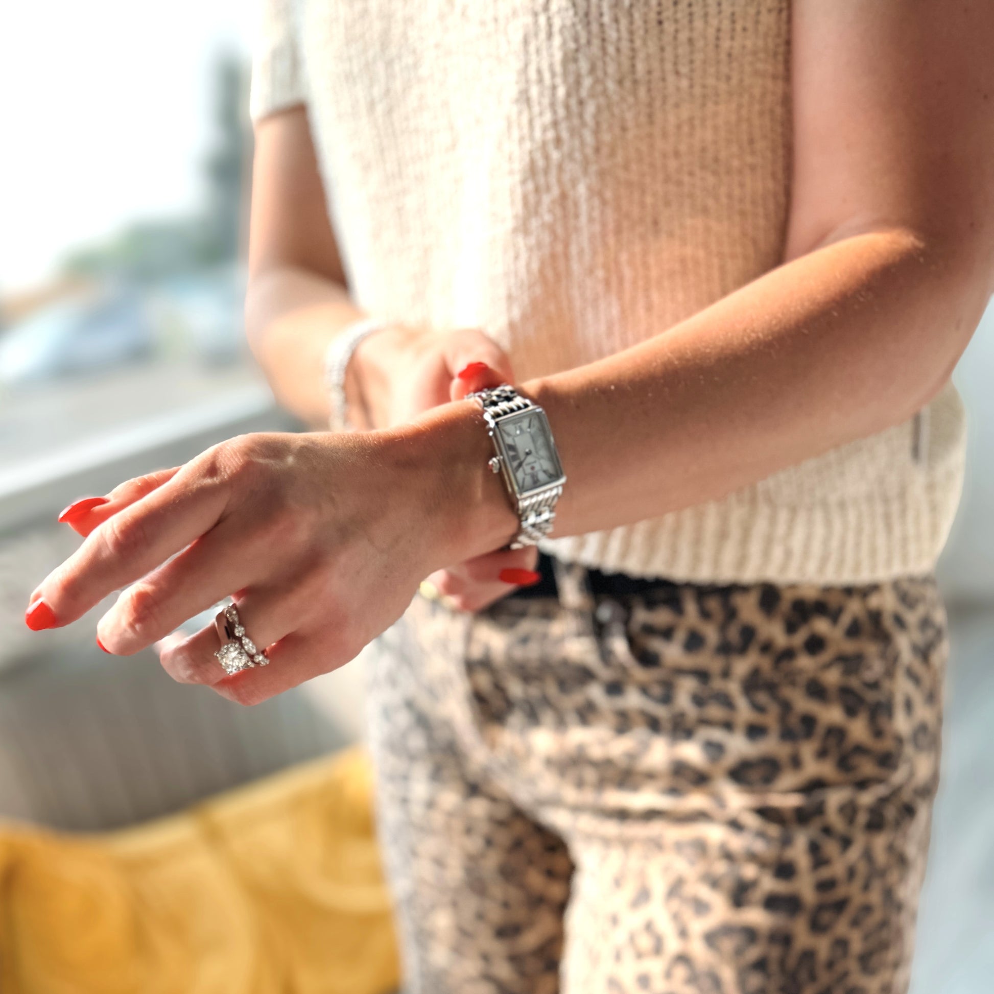The stainless steel bracelet, crafted exclusively for the Deco Park collection, adds durability and refinement. Interchangeable with any 14 mm MICHELE strap, this watch adapts easily to different looks and occasions.