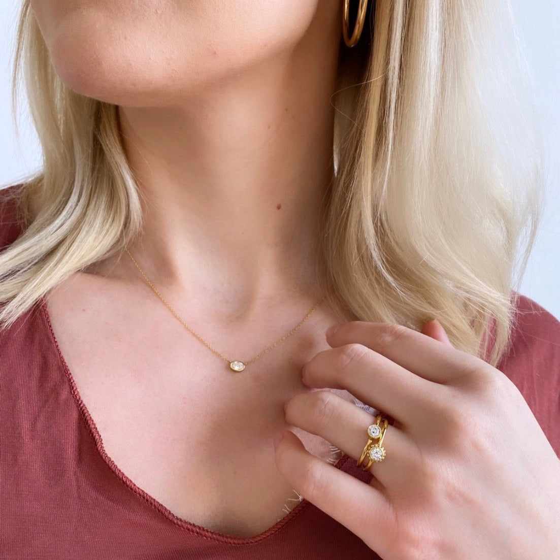 Beautifully detailed and set in 18K yellow gold, this Mia ring features a lovely channel set Forevermark diamond with a total carat weight of 0.26. It is perfect for stacking, wearing alone for an everyday look, or as an elegant engagement ring.