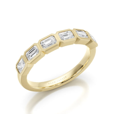 14K yellow gold band featuring 6 lab grown emerald-cut diamonds set east-west for a modern and sophisticated look.