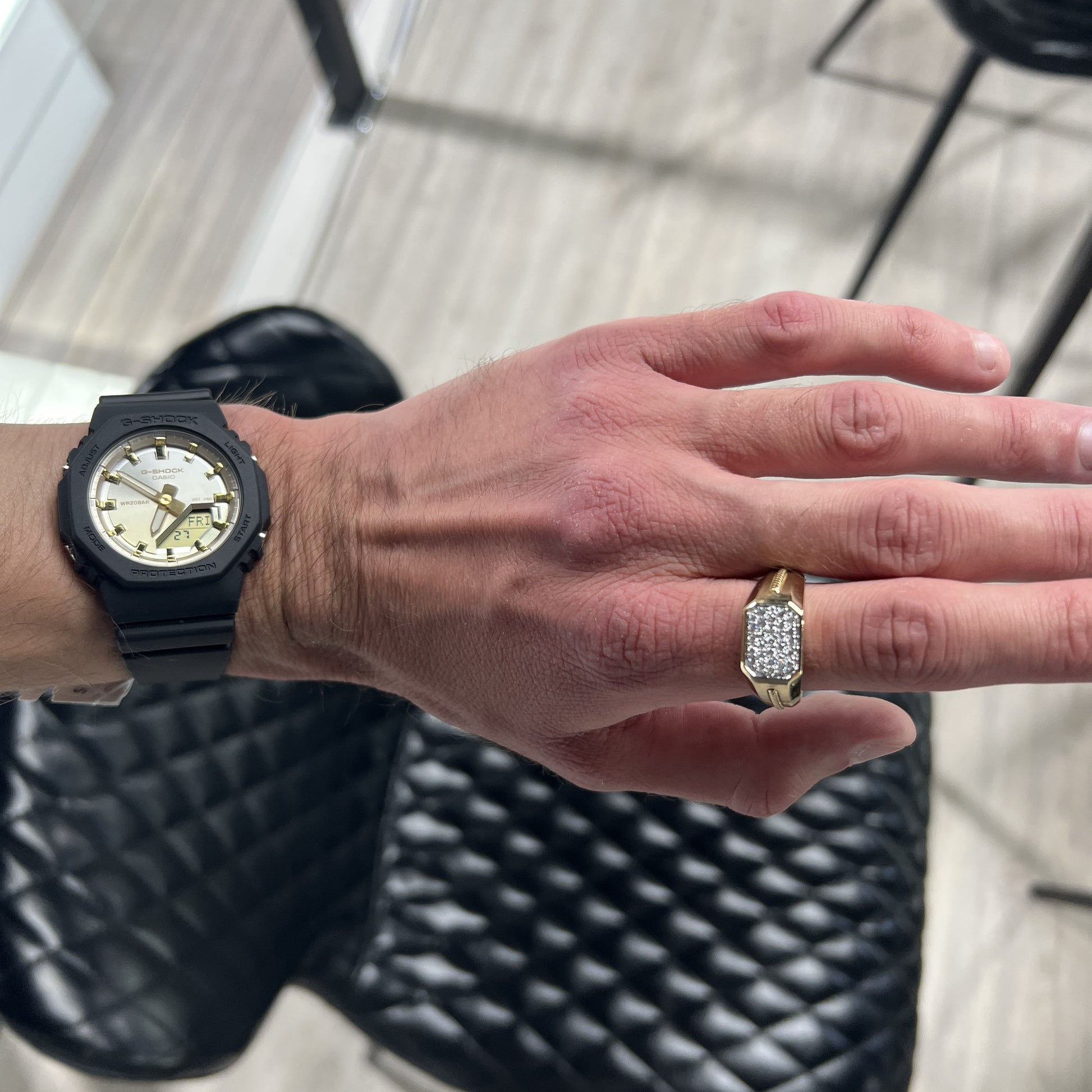 - Stone: White diamonds or black diamonds