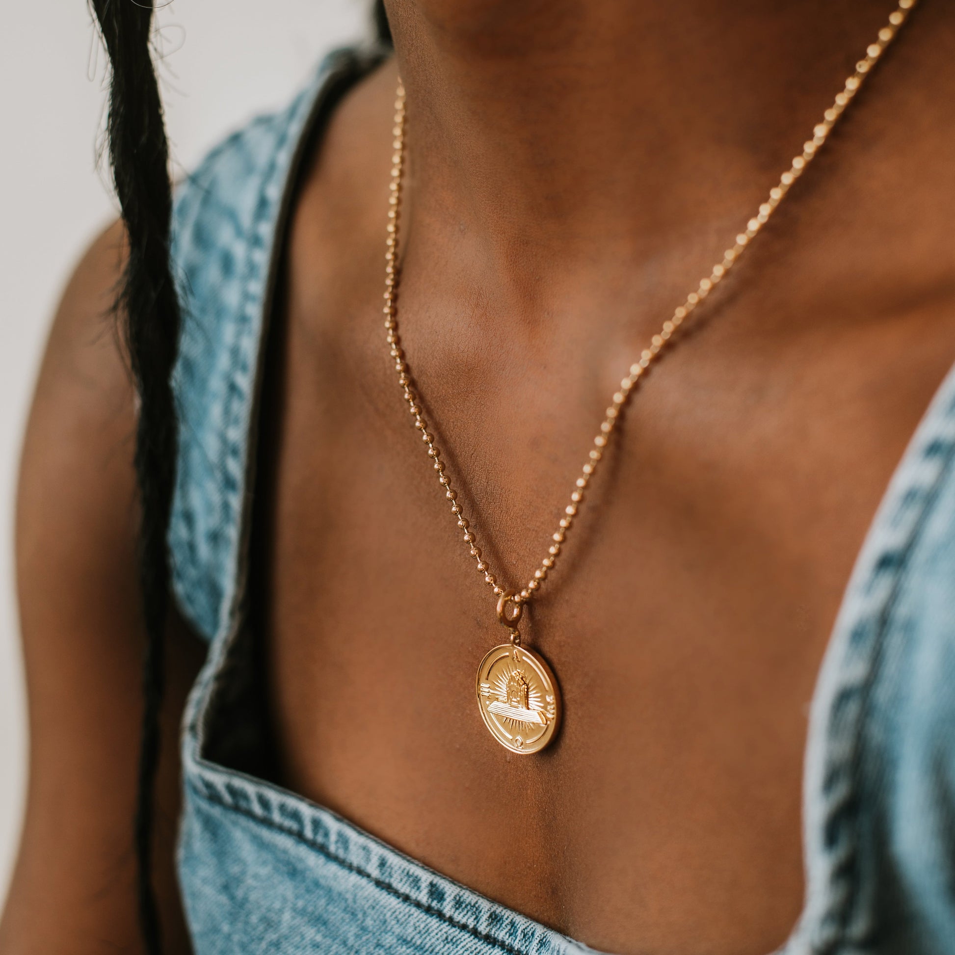 This signature pendant embodies thoughtful craftsmanship and intention. Created with care and blessing, it carries a depth of significance designed to resonate personally. Set with a clasp, it can be easily paired with any chain such as the Lois or Vivien.