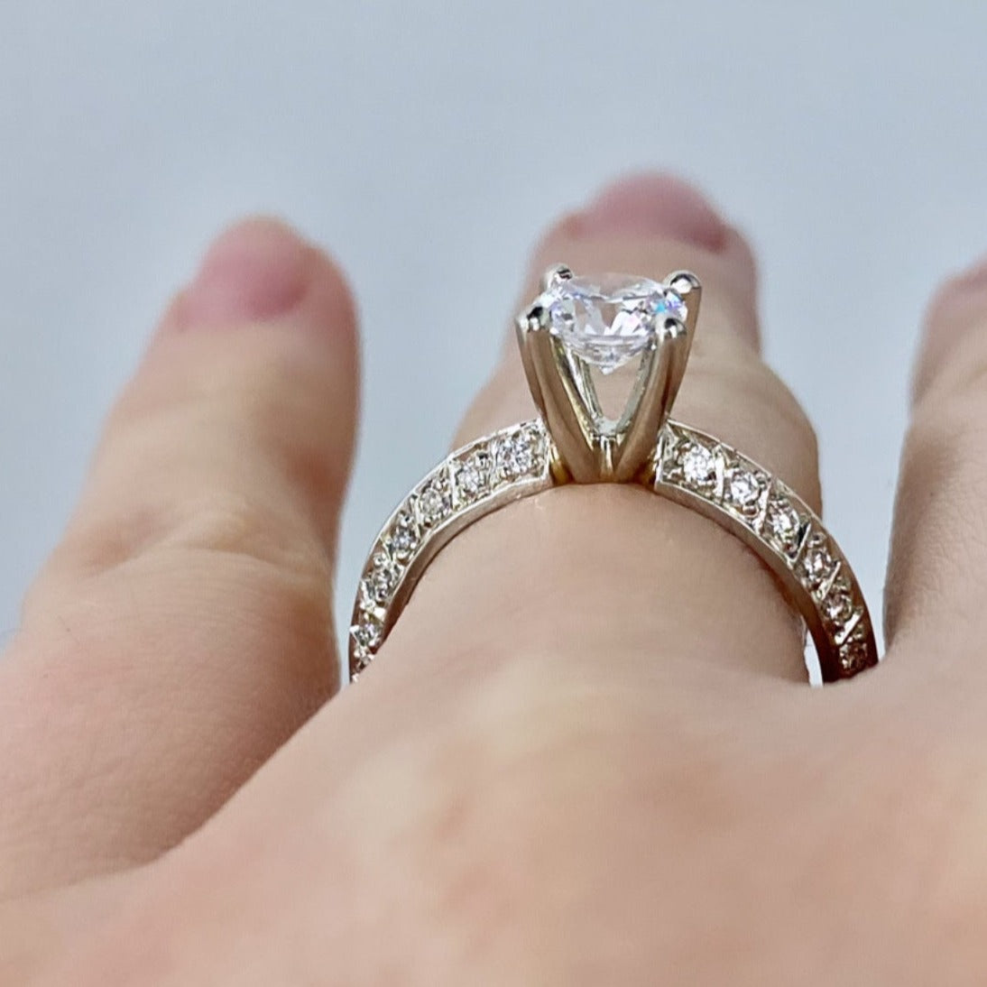 This solitaire-style Roset platinum engagement ring showcases the center diamond in a floating setting, allowing maximum light to highlight its full brilliance. Adorned with 0.52ct of accent diamonds on the knife-edge band, this elegant piece is ready for you to choose the perfect center stone.