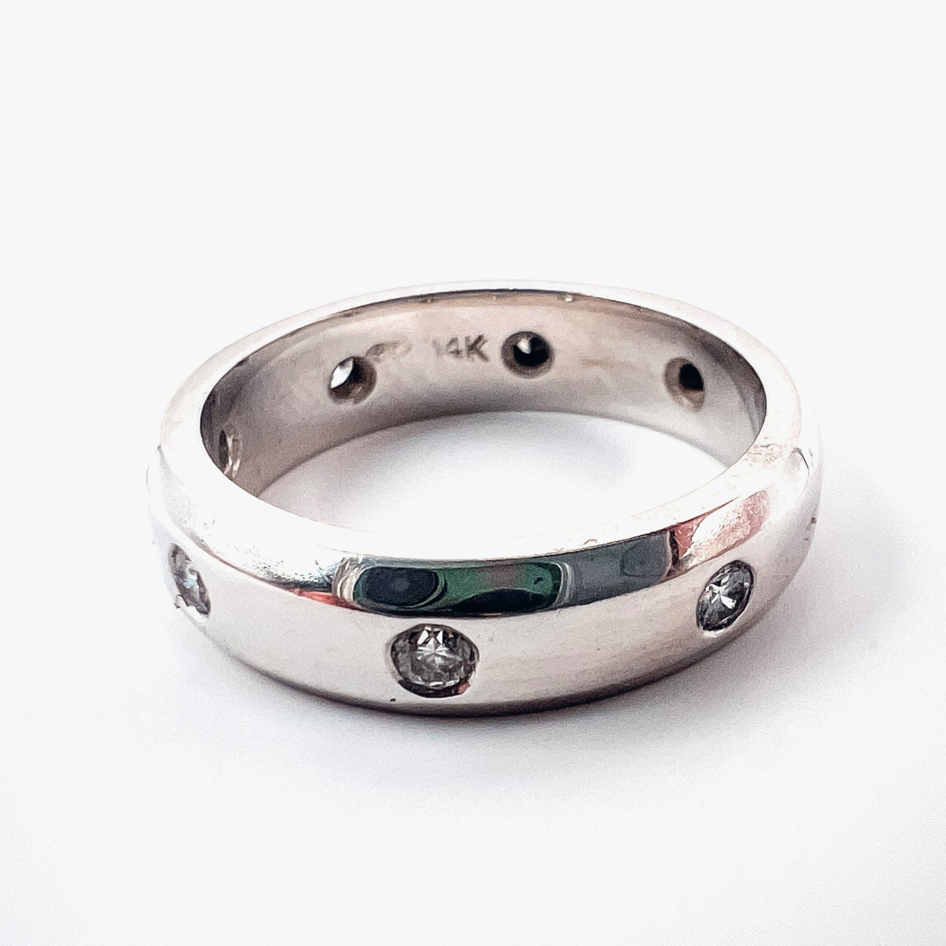 The Roset Gypsy Ring is crafted in 14k white gold with a sleek design that highlights a subtle diamond setting. Perfect for everyday wear, this ring balances simplicity and sophistication with quiet confidence.