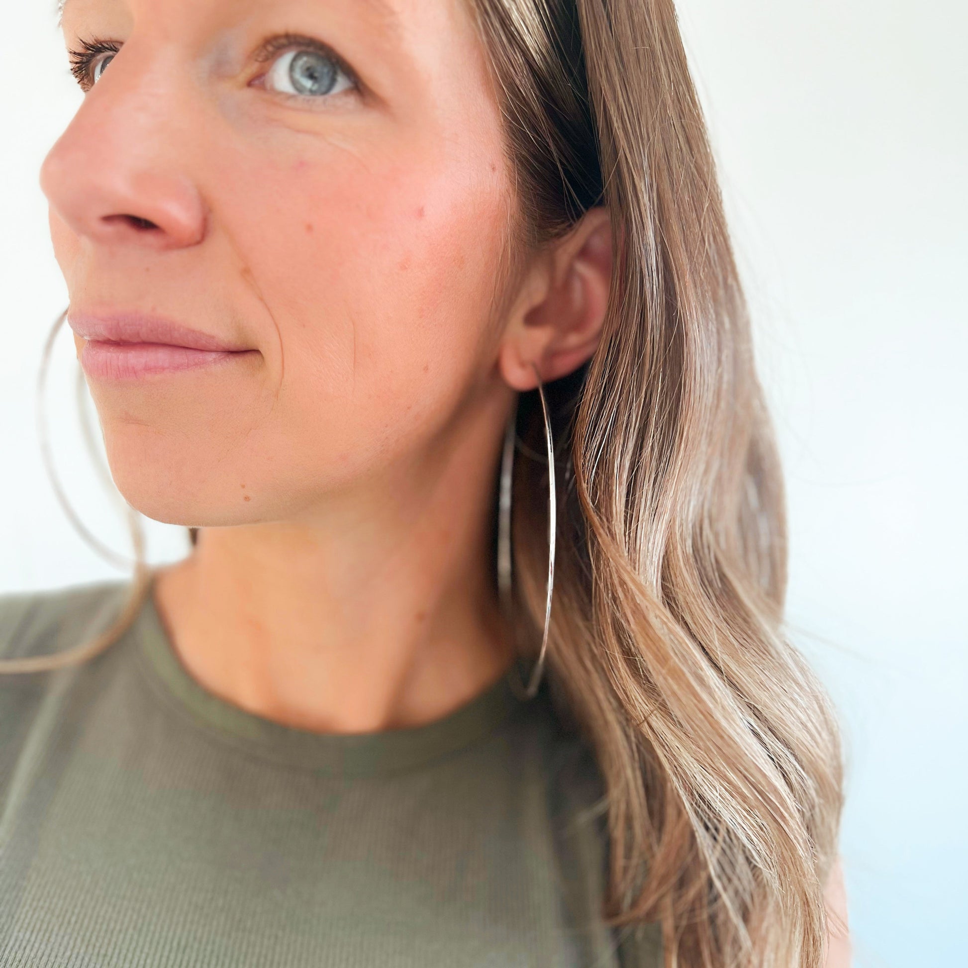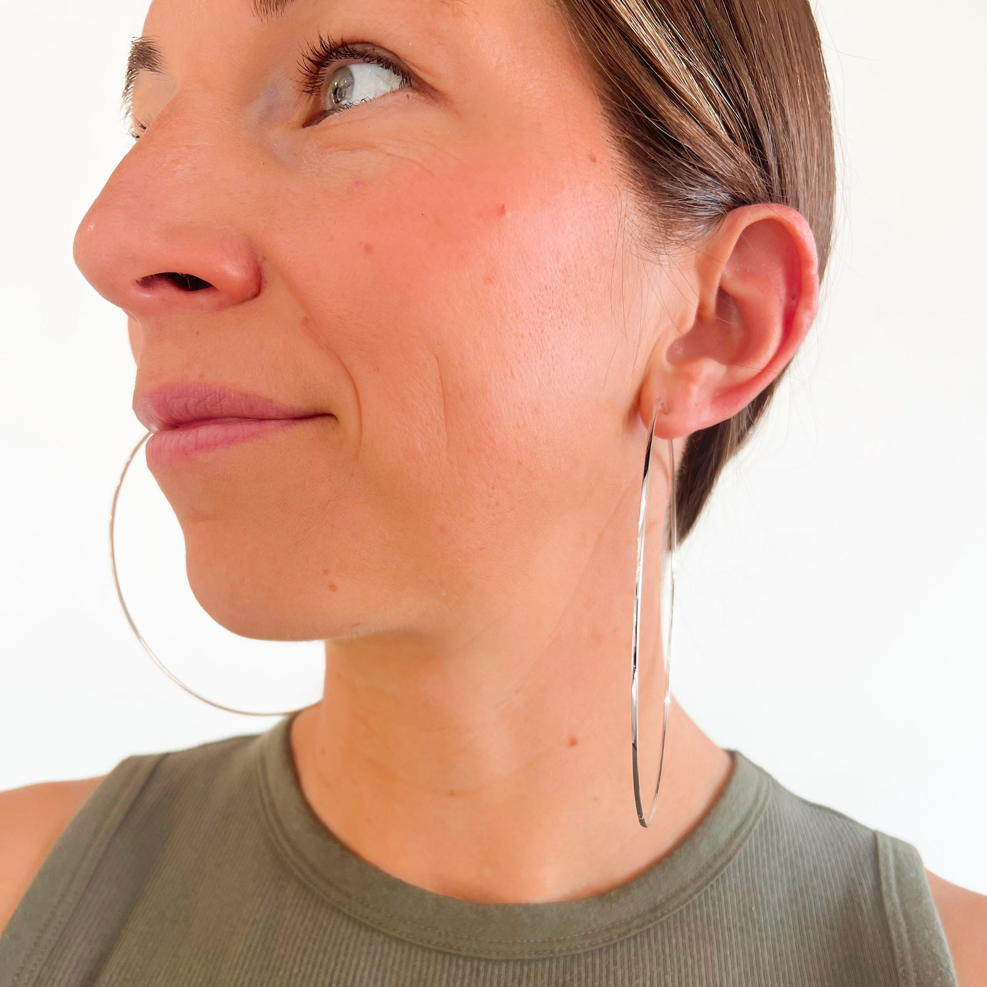 The Roset "Lucy" Large Hoop Earrings showcase the beauty of 18K white gold in a striking, oversized silhouette. With a generous 105mm size, these hoops make a confident statement while maintaining a sleek and timeless appeal.