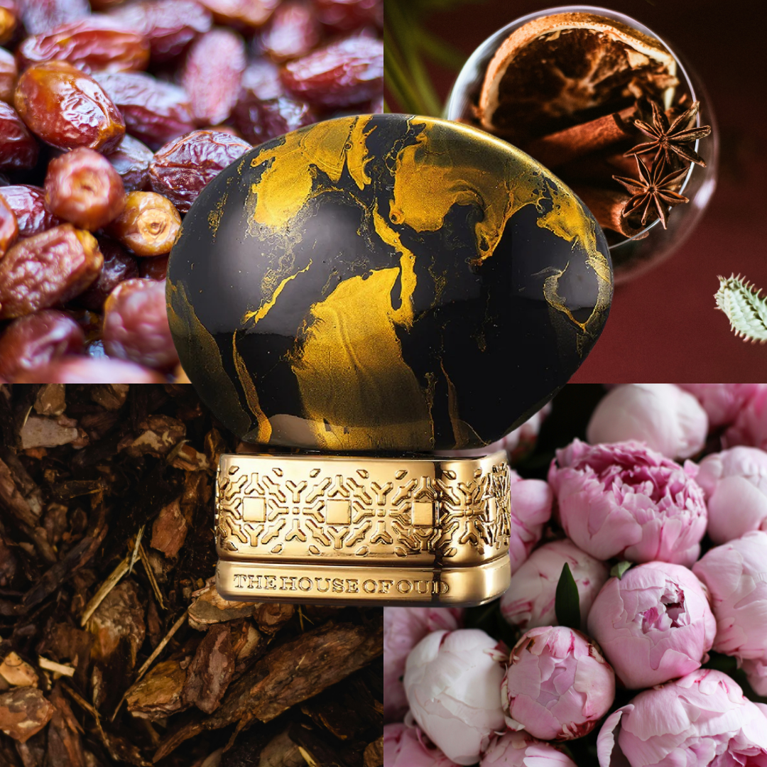 "Dates Delight" is a fragrant anthem celebrating the symbolic fruit of sweetness and the thrilling moments of falling in love. This captivating blend weaves Kalimantan oud, peony, and Riyadh dates into a mysterious and enchanting composition.