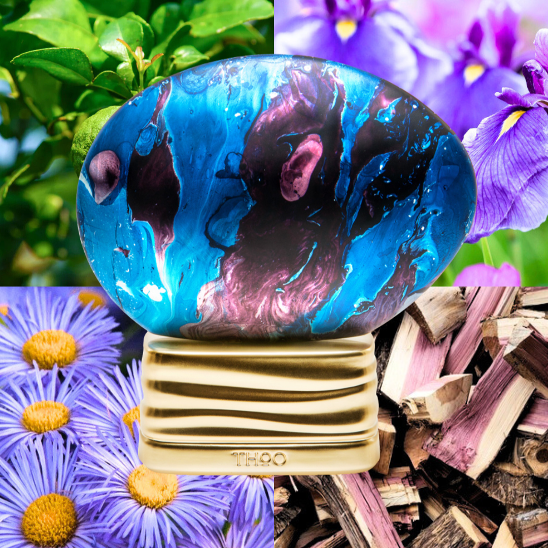 - A tranquil heart of blue tea and iris, expanded by the fresh elegance of verbena