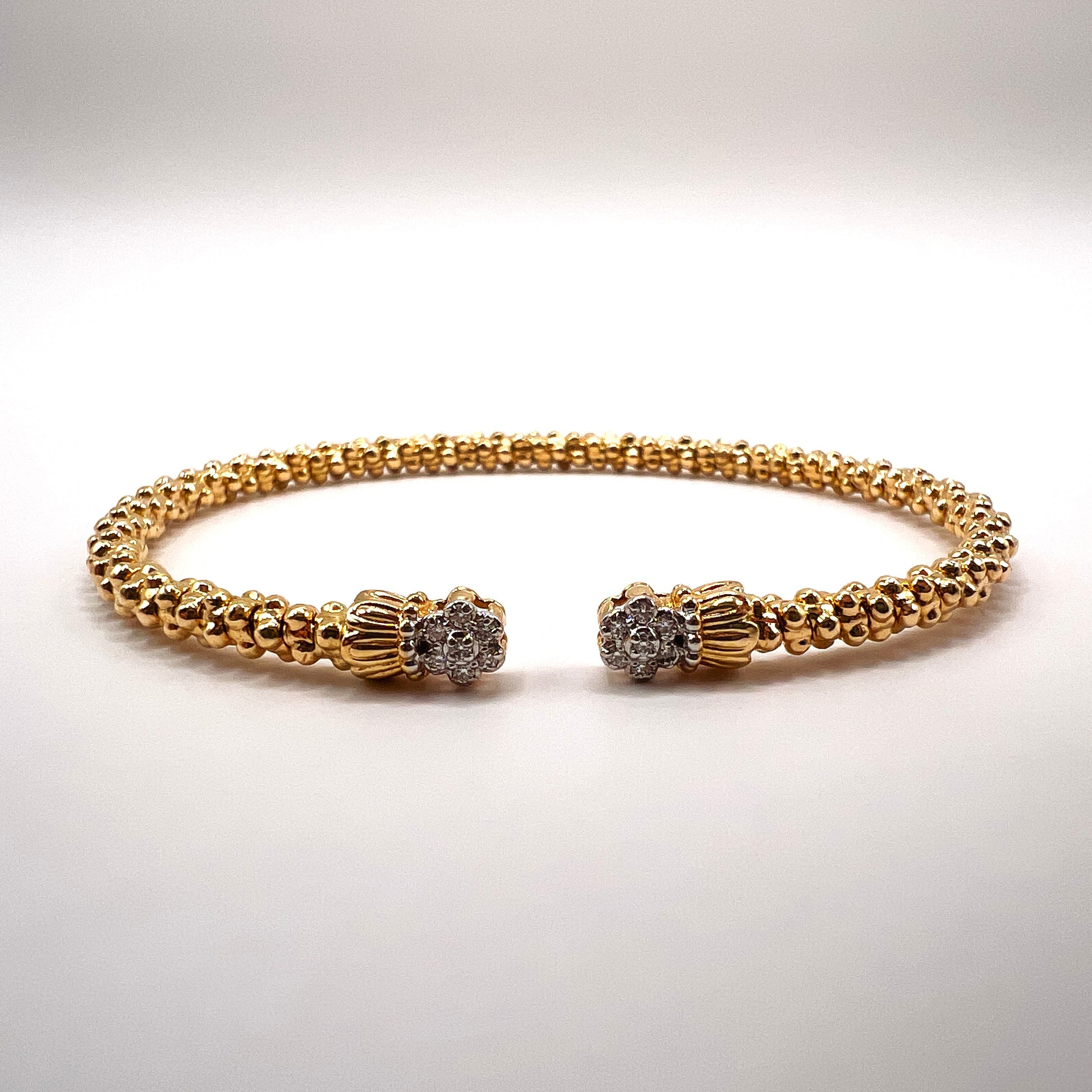 Vahan - 14K Yellow Gold Cuff Bracelet with Clover Diamonds